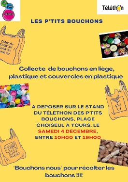Venez déposer vos bouchons en liège, en plastique et les couvercles en plastiques le 4 décembre pendant le Téléthon au stand des P'tits bouchons à la Place Choiseul.