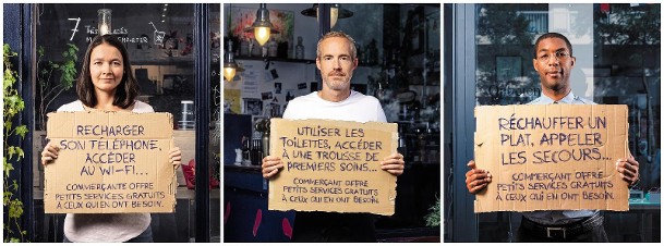 Le Carillon est un réseau de commerçants solidaires, présent partout en France. Le projet est porté par l'association La Cloche. Notre projet est d'inviter les commerçants qui le souhaitent et le peuvent à proposer des petits services gratuits du quotidien aux personnes en situation de grande précarité (recharger son téléphone, utiliser le wifi, prendre un verre d'eau, invendus, ...). Ils peuvent aussi, s'ils le souhaitent, proposer des produits "en attente", sur le modèle des cafés suspendus (un client paye deux cafés ou deux plats du jour et en laisse un en attente pour une personne qui viendra le récupérer par la suite.)