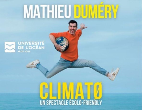 La Macif, mécène de l'Université de l'Océan et la Maison de l'Environnement de la Ville de Nice ont le plaisir de vous inviter à CLIMATØ, la nouvelle création de Mathieu Duméry. 1h30 de spectacle mêlant humour et vulgarisation scientifique autour des enjeux de la vie marine.