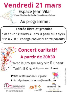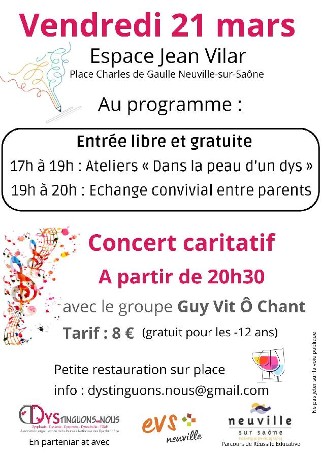 Dans différents ateliers entre 17h et 19h, sous forme d'exercice pratique (écrit, audio, manuel…) pour permettre au public de découvrir les troubles "DYS" et leurs impacts sur la vie quotidienne des personnes concernées