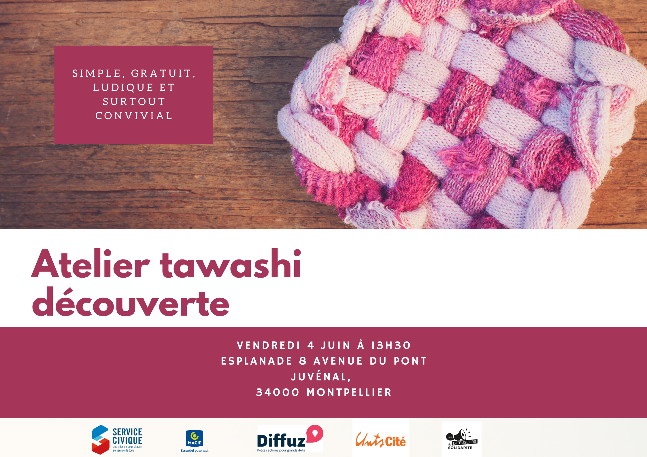 Bienvenue à toi, nous te convions à participer à notre atelier “éponge tawashi”, même si tu n'es pas manuel c'est ultra simple à réaliser, écologique (fait avec des chaussettes ou des collants par exemple), gratuit, ludique et surtout convivial, l’éponge se réalise en 10/15 minutes, c’est l’occasion de se rencontrer après cette période de confinement (assez isolante), n’hésite pas à te joindre à nous tu es la/le bienvenue.