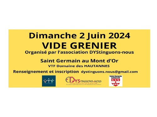 Nous organisons notre premier vide-grenier au profit de notre association DYStinguons-nous. Nous sommes à la recherche de bénévoles pour nous aider à l’accueil, à la sécurité, à la restauration et au bon déroulement de l’ensemble de l’événement.