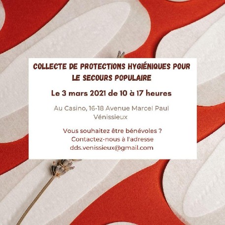 Venez collecter des produits hygiéniques et aider les femmes les plus démunies en participant à une collecte au Casino, 16-18 Avenue Marcel Paul, 69200 Vénissieux