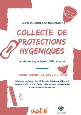 Dans le cadre du défi Sang% solidaire se déroulant sur toute la France du 5 Décembre au 24 février, les diffuseurs de solidarité du Rhône organisent une collecte de produits périodiques.
