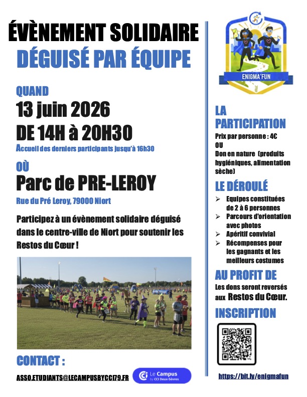 ENIGMA’FUN est une course d’orientation solidaire et déguisée dans le centre de Niort, au profit des Restos du Cœur