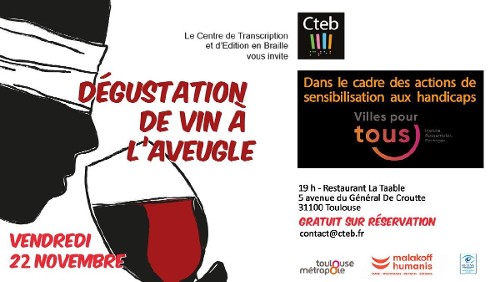 SOIRÉE DE SENSIBILISATION AU HANDICAP VISUEL ET À L’ÉDITION ADAPTÉE EN BRAILLE : soyez bénévole pendant la 5ième dégustation de vin à l’aveugle du CTEB.
