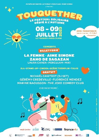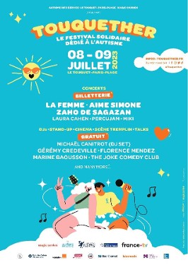 L’association Autisme Info Service et la Ville du Touquet-Paris-Plage sont fiers d’annoncer l’édition 2023 de TOUQUETHER, le premier grand festival musical, culturel, gastronomique et solidaire dédié à l’autisme, qui aura lieu le 8 et 9 juillet 2023 au Touquet-Paris-Plage (62).