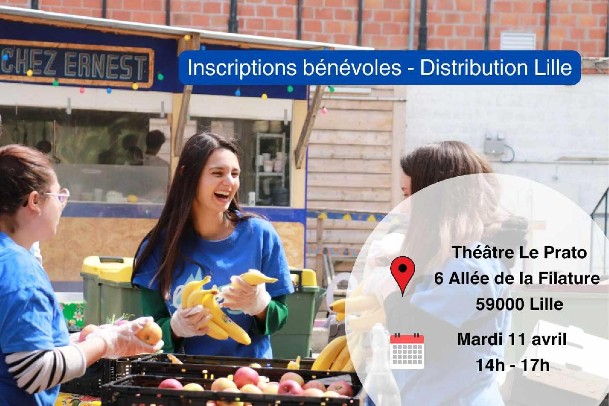 Inscris-toi pour participer à la première distribution alimentaire Lilloise de Linkee ! Elle se déroulera le mardi 11 avril à 14h au théâtre Le Prato (6 Allée de la Filature 59000 Lille, à 100m de Lille 2 Moulins) pour préparer la distribution qui aura lieu de 15h à 16h30 ! L'évènement complet est donc de 14h à 17h.