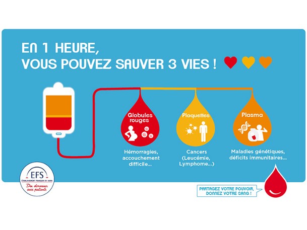 Chaque jour, 10 000 dons de sang sont nécessaires pour répondre aux besoins des malades. Aucun traitement ne peut se substituer aux produits sanguins. La mobilisation des donneurs est donc indispensable pour soigner chaque année un million de malades.