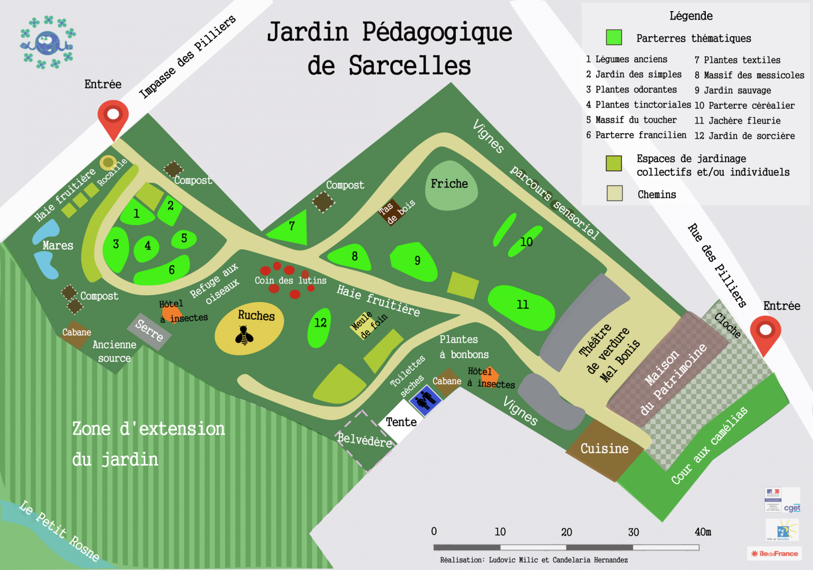 Découvres le jardin pédagogique et ses différents parterres thématiques: jardin de plantes médicinales, plantes tinctoriales, plantes odorantes, légumes anciens, jardin de sorcière, plantes textiles, jardin sauvage...