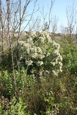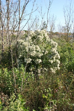 Le baccharis halimifolia est un arbuste originaire d’Amérique du Nord de la famille des Astéracées qui résiste aux embruns. Il a été introduit massivement sur les côtes françaises dans les années 90 et a une forte dynamique et donc à fort pouvoir de propagation.