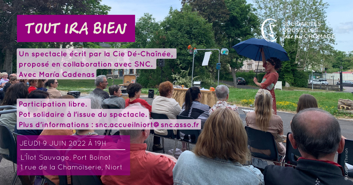 Ta mission ? Assister à la représentation « Tout Ira Bien » le 9 juin à 19h, au Port Boinot à Niort et communiquer la date à ton réseau. Partage l’information sur tes réseaux sociaux et surtout, fait marcher le bouche-à-oreille !