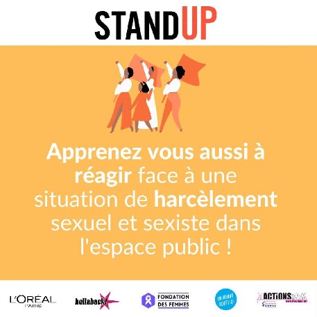 Inscris toi gratuitement à la formation stand up! contre le harcèlement de rue afin d'apprendre à agir au quotidien contre le harcèlement dans l'espace public, en tant que témoin ou victime.
