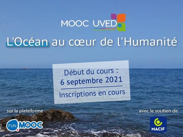 La Fondation UVED a le plaisir de vous informer de l'ouverture des inscriptions de la session 1 du MOOC "L'Océan au cœur de l'Humanité" qui débutera le 6 septembre 2021 sur la plateforme FUN :