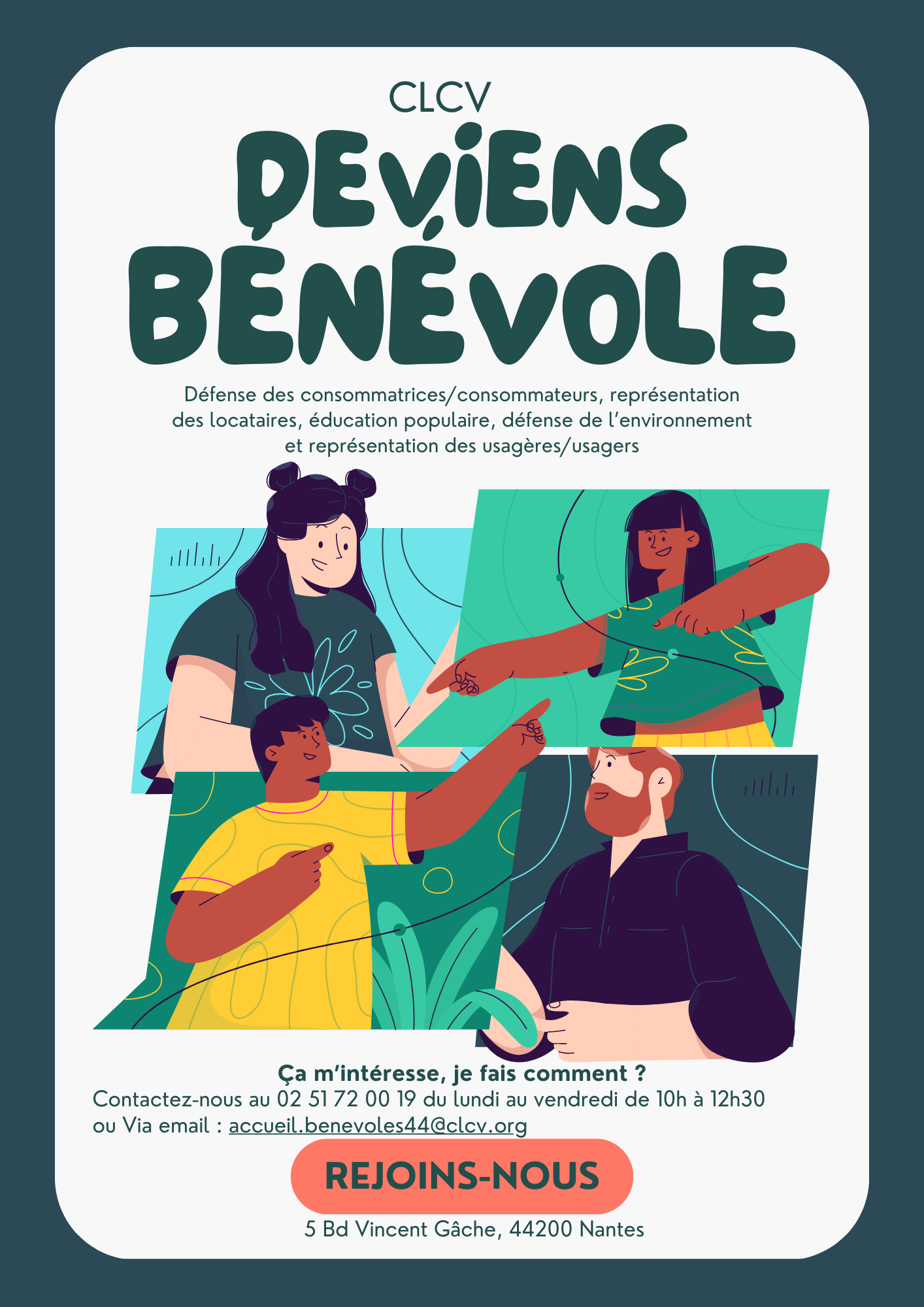 Notre association agit pour la défense des consommatrices/consommateurs, la représentation des locataires, l'éducation populaire et la défense de l’environnement.