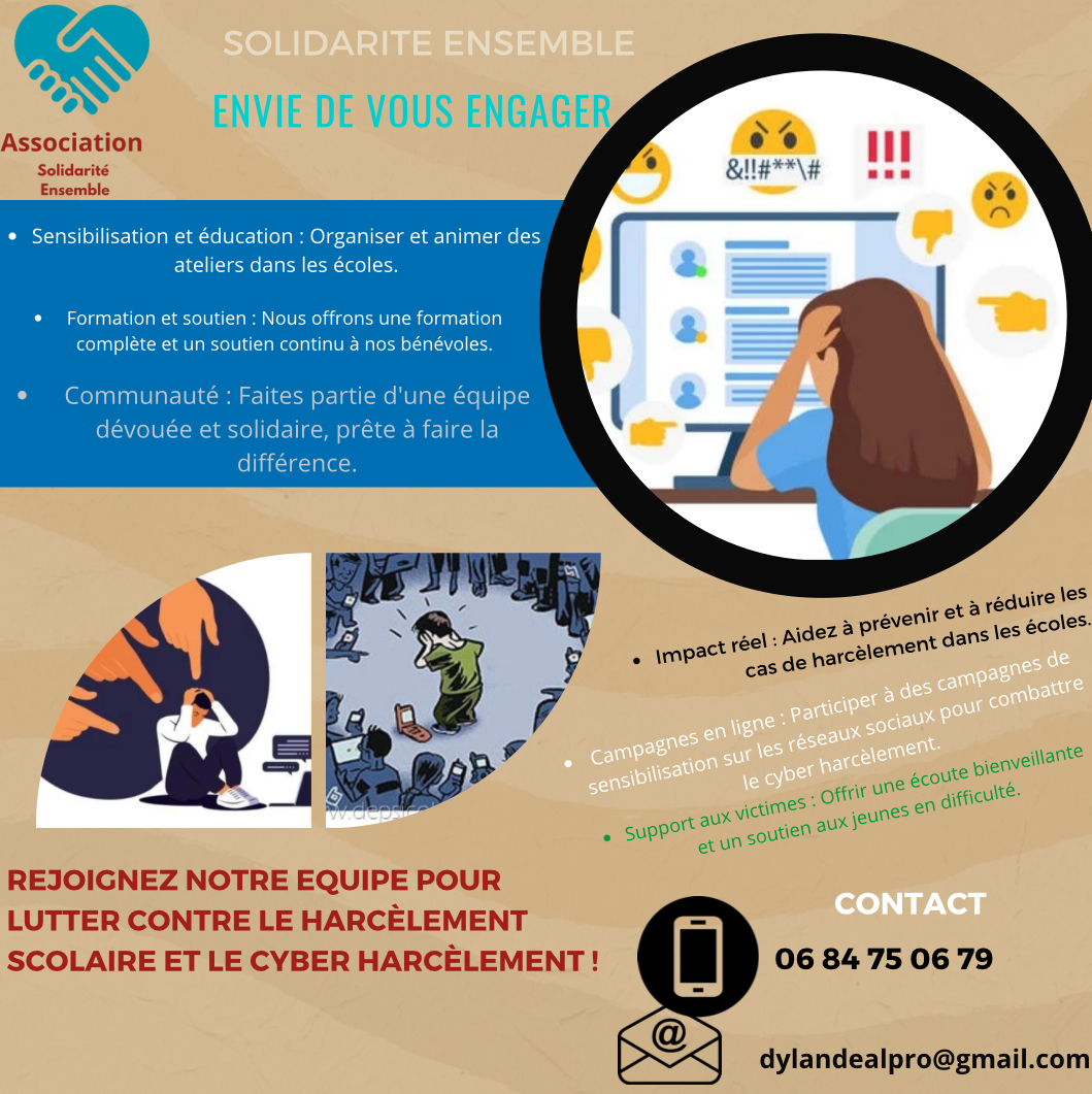 Solidarité Ensemble est une association de lutte contre le harcèlement, le cyberharcèlement, l'homophobie et les violences faites aux enfants.