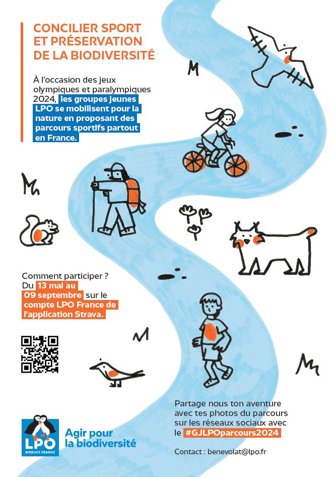 En 2024, les Jeux Olympiques et Paralympiques de Paris offrent une opportunité unique de mettre en lumière le sport et la biodiversité. Des groupes de jeunes bénévoles engagés ont saisi cette chance pour sensibiliser à la biodiversité en créant des parcours de GPS Drawing. Ces parcours, disponibles du 13 mai au 09 septembre sur le compte LPO France de l’application STRAVA, représentent des animaux pouvant être impactés par les pratiques sportives.
