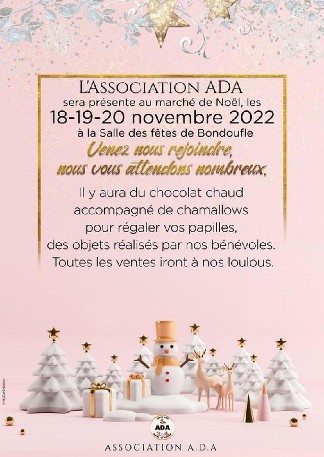 Venir rejoindre l'association sur le marché de noël de Bondoufle (91).