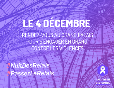 La Fondation des Femmes organise la 3ème Nuit des Relais, LA course solidaire pour s'engager contre les violences faites aux femmes ! Cette soirée sportive, festive et engagée aura lieu le 4 décembre au Grand Palais de 18h à 00h !