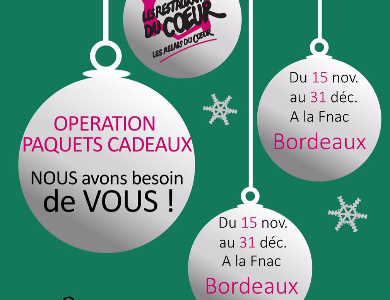 Le concept ? En équipe, aidez les maladroits à emballer leurs achats de Noël à la sortie des magasins. Dans un esprit convivial cher aux Restos, participez à ce défi entre amis et aidez l’association à récolter des dons pour donner le sourire aux plus démunis.