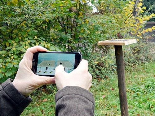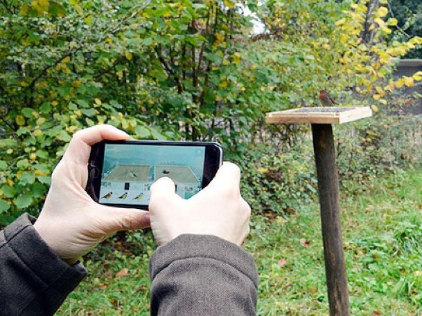 3. Place-toi face à tes deux mangeoires (à distance respectable pour ne pas effrayer les oiseaux !) et reproduis l’activité des différentes espèces sur les mangeoires en temps réel pendant 5 minutes via un simple « drag & drop ».