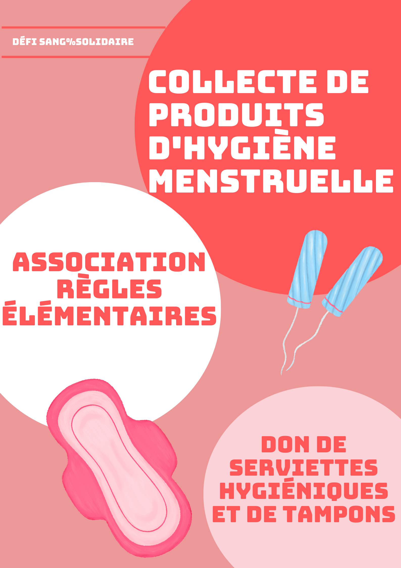 Munis toi des produits d’hygiène menstruelle que tu souhaites donner et RDV au QG !
