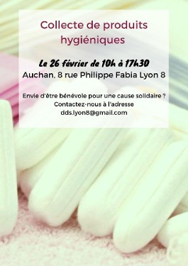 Nous organisons le 26 février au supermarché Auchan Etats-Unis (8ème arrondissement) une collecte de protections hygiéniques.
