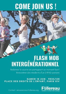Nous te défions d’aller à la rencontre des résidents et de leur redonner le sourire en partageant un moment festif et dansant. Cet évènement aura lieu samedi 18 juin de 9h30 à 12h dans le 14eme arrondissement de Paris. La durée prévue du flash mob est de 15min.