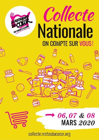 Viens participer à la Collecte Nationale des Restos du Cœur pour atteindre notre objectif 2020 de dépasser les 9 000 tonnes, soit l'équivalent de 9 millions de repas supplémentaires pour les plus démunis !
