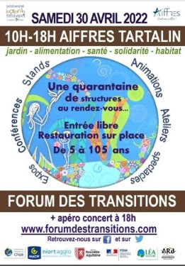 Venez participer au deuxième forum des transitions proposé par l’association Biodiversité Balanin et Torchepot et la Municipalité d’Aiffres avec le soutien de la Macif.