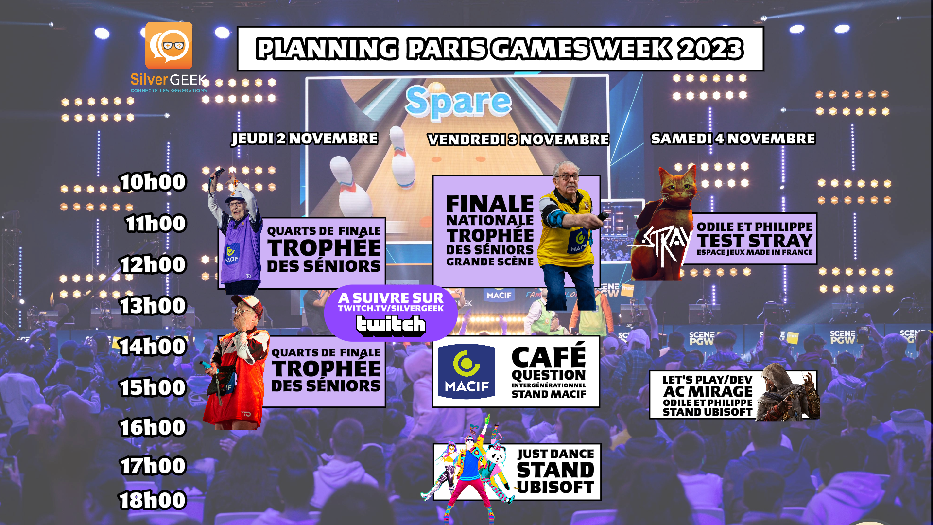 La Paris Games Week est le plus grand salon de jeu vidéo en France. Il accueille depuis 2019, la finale nationale du Trophée des Séniors, une compétition, organisée par SIlver Geek, entre personnes âgées sur le jeu Wii Bowling. La finale 2023 se déroulera sur la grande scène, le 3 novembre à partir de 9h45.