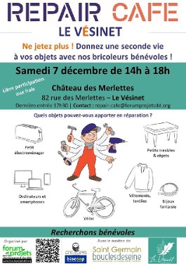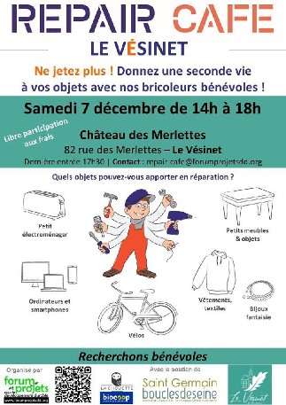 Enfin, pour tous les bénévoles réparateurs, afin d’être couvert, lors de vos activités pendant le Repair Café, par l’assurance souscrite par l’association « Forum et Projets pour le Développement Durable », il est nécessaire d’adhérer (montant libre) en ligne ICI.