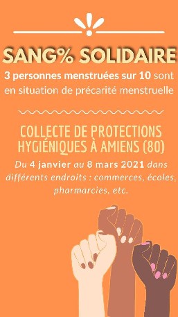 Du 4 janvier au 8 mars se déroule notre projet Sang % Solidaire qui consiste à collecter des protections hygiéniques pour les redistribuer par la suite aux personnes dans le besoin.