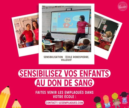Les Emplaqués se déplacent dans les écoles et collèges de France pour sensibiliser les enfants & adolescents aux dons de sang et de plaquettes. En effet, les jeunes sont les donneurs de demain et dès à présent de formidables prescripteurs auprès des adultes qui les entourent.