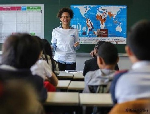 Avant de courir, les élèves sont sensibilisés par des bénévoles, qui leur présentent les problématiques de la faim dans le monde ainsi que le concept de la Course contre la Faim.