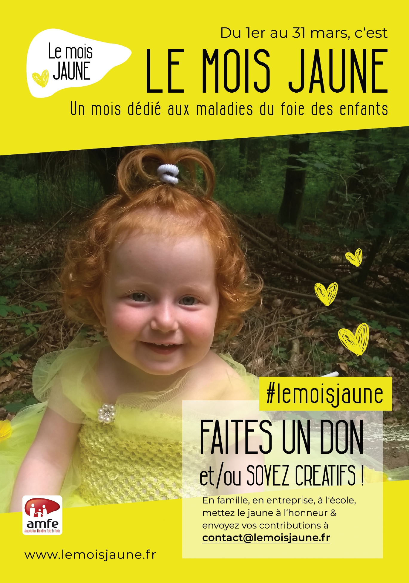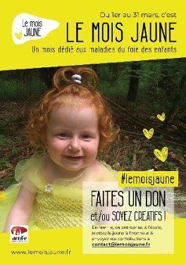 En mars chaque année, l'AMFE (Association Maladies Foie Enfants) organise un mois national dédié aux maladies du foie des enfants, le mois jaune.