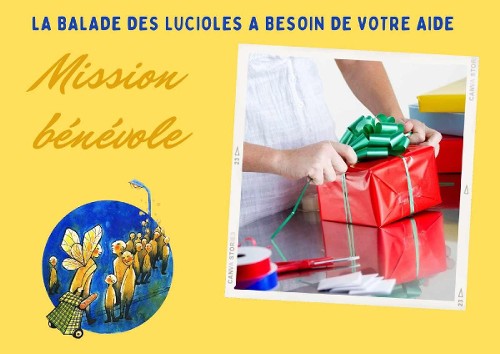 Installée au cœur du centre commercial de Paddock Paris Est, votre mission consiste à emballer les cadeaux achetés d'un les différents magasins du centre. Une urne sera mise à disposition des clients afin qu’ils y laissent leurs dons libres. La totalité de la somme récoltée reviendra à l’association de la balade des lucioles qui les utilisera afin d’acheter des denrées alimentaires nécéssaire pour ses maraudes.