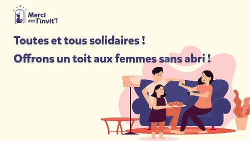 Merci pour l'invit' est un dispositif qui met en relation des hébergeurs et hébergeuses citoyens, qui ont une chambre disponible gratuitement, avec des femmes sans-abri. Rien de mieux qu'un toit sur sa tête pour se sentir en sécurité, se poser et se réinserer.