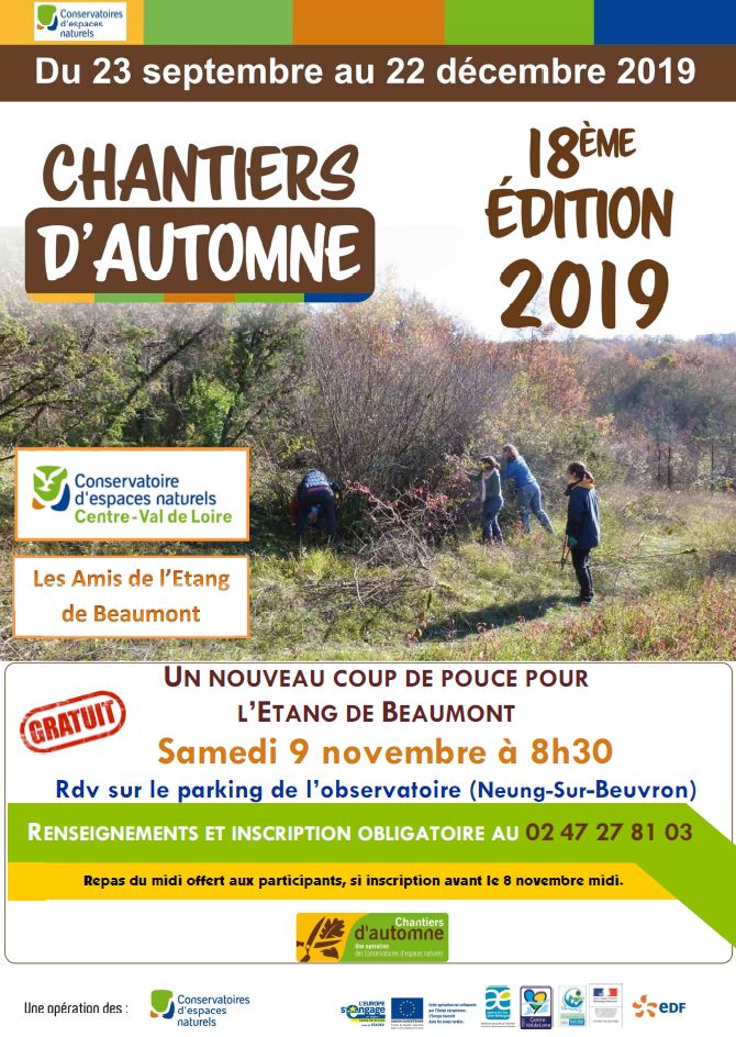 Chantier bénévole organisé par le Conservatoire d'espaces naturels Centre-Val de Loire avec les Amis de l'Etang de Beaumont.
