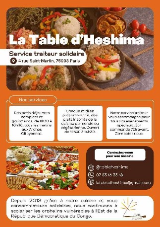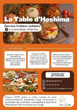 En Swahili, "heshima" évoque le "respect", c’est pourquoi la Table d’Heshima est un projet collectif de restauration/ traiteur solidaire créé en 2013, qui s’est donné 2 objectifs :