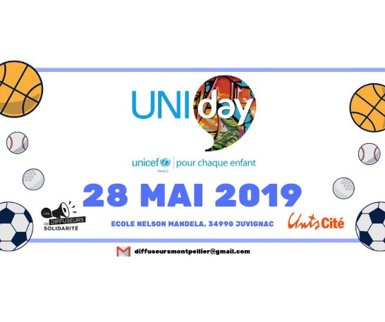 Pour cette troisième édition : L'Unicef de l'Hérault et les Diffuseurs de Solidarité vous proposent, de participer pour l'évènement Uniday, à une journée sportive à l'Ecole Nelson Mandela à Juivgnac (20 rue Neptune, Juvignac)