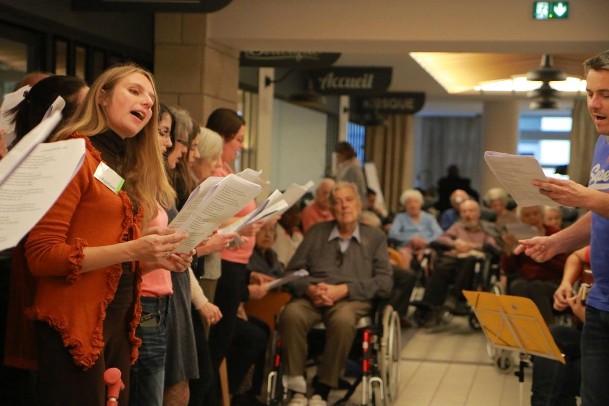 Une équipe de bénévoles réalise des animations chantées auprès des résidents d'un EHPAD, une après-midi par mois, avec un répertoire très variés, allant des succès de leur jeunesse à ceux de nos jours.