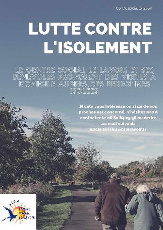 Le centre social le lavoir recherche des personnes pour rendre visite bénévolement à des personnes âgées en situation d'isolement 1h30 par semaine ou toutes les deux semaines afin de partager avec eux une discussion, un café ou encore par exemple jouer à des jeux de sociétés ! Les personnes âgées se situent au sein de la communauté de communes de la plaine de l'Ain !